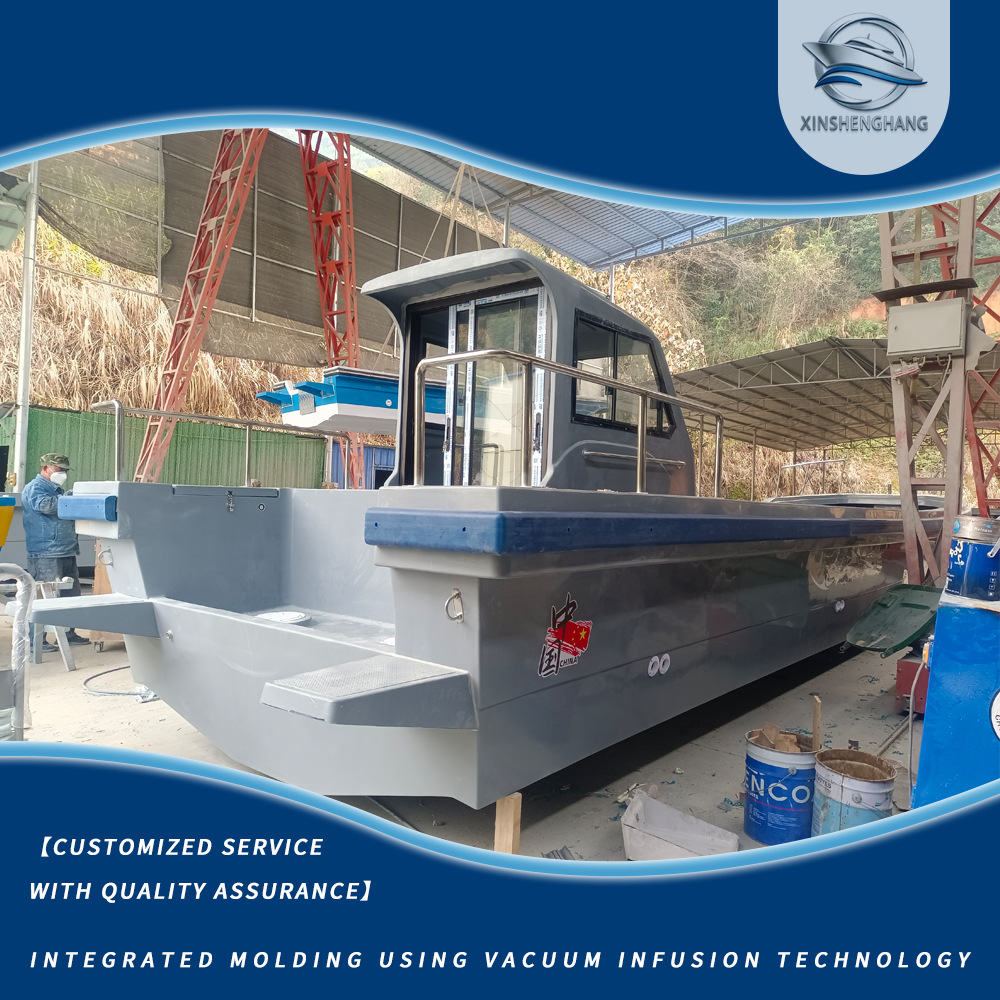 Рабочее судно для прибрежной логистики с корпусом из стеклопластика — это высококачественное рабочее судно, предназначенное для прибрежной логистики и транспортировки. Изготовленный из высококачественного стеклопластика с изысканным мастерством, он сочетает в себе долговечность, эффективность и практичность. Он в основном подходит для функций транспортного судна и может эффективно выполнять такие задачи, как перевалка грузов на берегу и логистическое соединение. В то же время его можно использовать в качестве легкого вспомогательного рыболовного судна для перевозки рыболовных материалов, а также в качестве вспомогательного судна для морской рыбалки из стеклопластика для перевозки больших партий рыболовных снастей и улова, адаптируясь к операционным потребностям различных областей, таких как прибрежная логистика и поддержка рыболовства. Корпус изготовлен из утолщенного стеклопластика, который обладает суперстойкостью к коррозии в морской воде и устойчивостью к ветровым волнам, не боится сложных прибрежных вод и высокоинтенсивных эксплуатационных потребностей логистических перевозок, имеет стабильную навигацию и высокую несущую способность, а также длительный срок службы, обеспечивающий надежную и безопасную гарантию для прибрежных логистических перевозок.